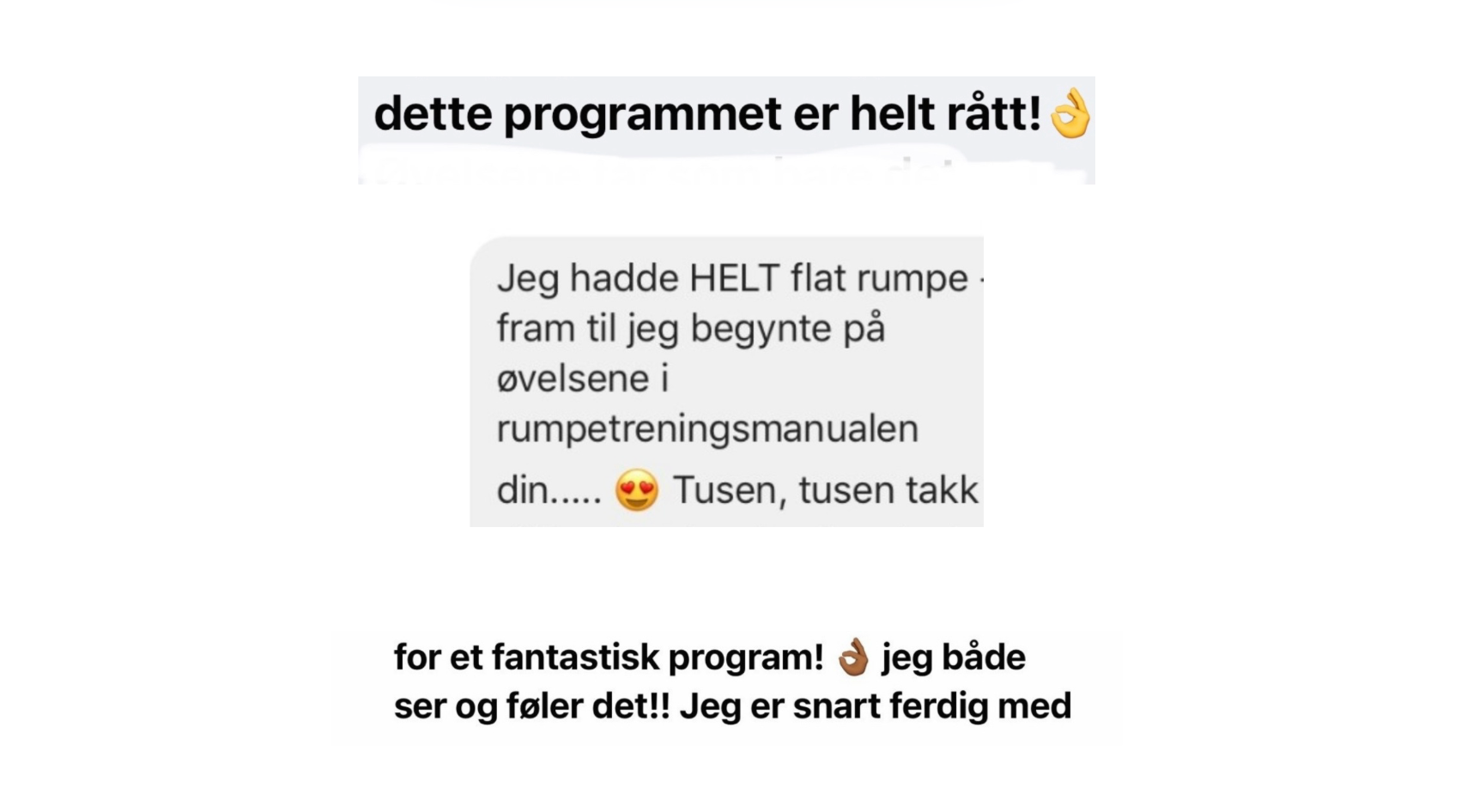 "Rumpa mi var HELT flat når jeg først startet på programmet fra Silje Mariela. Nå elsker jeg treningsresultatene jeg har fått. TAKK!"